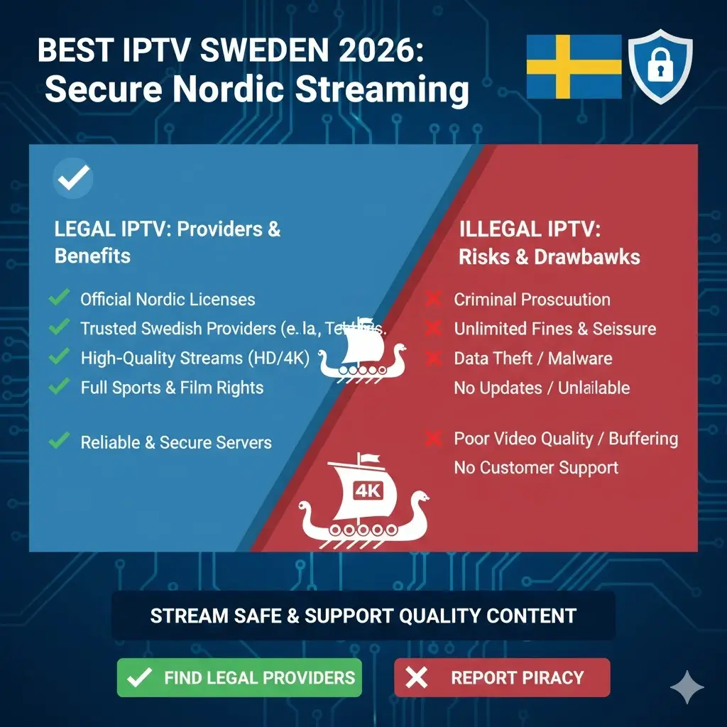 Finding bästa IPTV Sverige (best IPTV Sweden) requires understanding Sweden’s evolving streaming laws pre-July 2026. This comprehensive guide covers secure IPTV Sweden providers, Nordic IPTV alternatives to Viaplay, C More, and TV4 Play, Swedish IPTV legal status, SHL streaming (Swedish Hockey League) options, and GDPR-safe encrypted Nordic server nodes. Whether seeking Allsvenskan football, Eurovision, or international content, this IPTV Sweden 2026 guide provides vetted Nordic IPTV provider recommendations with full legal compliance and encryption standards.